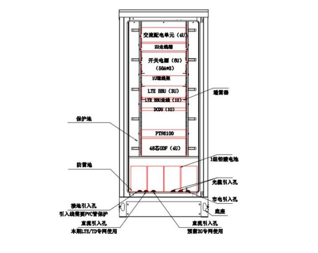 (1) External Dimension:W×D×H 900×900×2100mm Internal Dimension: W×D×H 800×800×1800mm (19”,40U) (2) One compartment: equipment and battery compartment (3)With one front door, and anti-theft three point lock for outdoor cabinet (support padlock) (4) Material: cold rolled steel sheet +45 mm Sandwich structure panel (5) Heat insulation performance: thermal conductivity<0.472W/m2.K> (6) Internal structure: 19 inch rack +one layer battery shelf (7) Base height: 200mm (8) Cable entry: cabinet bottomφ50*8 (9) Anti-theft design: embedded door,embedded hinge, three point lock (10) Protection level: IP55 (11) Color: RAL7035, professional outdoor powder coating (12) Including grounding bar, DC48V lamp, FSU guide rail