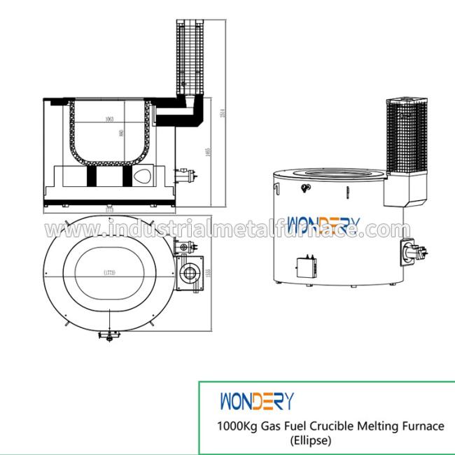 The metal melting furnace consists of furnace body, electrical control box and combustion system, furnace